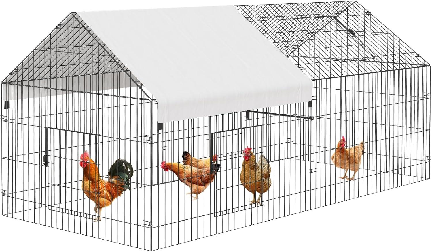 Our time using this spacious outdoor enclosure has been notably positive.The generous dimensions comfortably housed our group of hens and small pets, giving them ample room to roam and explore without feeling cramped. The presence of multiple access points-including four side doors and a top feeding hatch-proved incredibly practical for both our animals and us, allowing easy management and feeding. The sturdy metal frame, treated with an epoxy coating, held strong against harsh weather conditions, resisting rust and fading, which reassured us about its long-term durability. The ground nails considerably enhanced stability, preventing any unwanted movement even on uneven terrain.